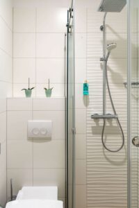- Bathroom with rain shower and hair dryer